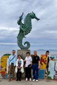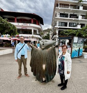 We walked along the Puerto Vallarta Malecón, where sculptures stood along the waterfront like silent storytellers. Artists, performers, and craftsmen gathered there, creating a vibrant cultural scene. The ocean breeze carried the sound of laughter and music, and Guangyi and Lifang could not stop taking photographs.