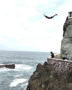 Cliff diving in Mazatlán is a, historic, and thrilling spectacle at Punta de Clavadistas (Divers Point), where locals plunge 45 feet into shallow, rocky water. Located near Olas Altas beach, this tradition features, daily,, performances from midday to late afternoon. As we watched the brave man climbed to the top of the cliff and jumped into the sea, our feeling turned from worry to respect. What a courageous show!