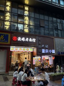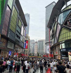 Rosa and I stayed near the Liberation Monument, the heart of Chongqing’s bustling downtown. It was the perfect place to feel the city’s pulse. The streets were alive with what the Chinese call “people mountain, people sea” — waves of people moving through bright shopping streets, laughter echoing between high-rises, and the aroma of spicy hotpot floating in the evening air.