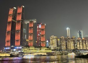 That night, standing with Rosa under the neon skyline on the Century Legend Cruise, the only luxury river cruise from Chongqing to Shanghai in China, we felt that Chongqing was more than a starting point for our cruise. It was a living story — of mountains and rivers, of hardship and rebirth, of modern beauty rising from the depths of history. The cruise purposedly started our journey at night with all the lights on over the city so we could enjoy the full beauty of Chongqing.