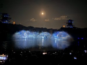 That evening, the haunting gave way to grandeur. We attended the “War Fire of Three Kingdoms” performance—Feng Yan San Guo—staged outdoors with the Yangtze and the Three Gorges as its natural backdrop. It was not just a show; it was an epic come to life. The mountains glowed under fiery lights, echoing with drums and shouts of ancient warriors. Battles raged across water and land, retelling the legendary tales of loyalty and strategy that shaped China’s past.